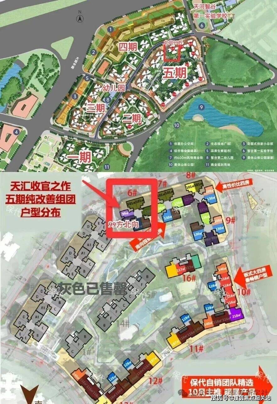 社区整体规划:项目分五期开发,在售五期为整个项目规模最大的楼王组团,由16栋纯住宅组成,无公寓、无商业,居住属性纯粹,避免商业噪音干扰,打造静谧、舒适的居住环境,适合刚需及改善家庭长期居住。
