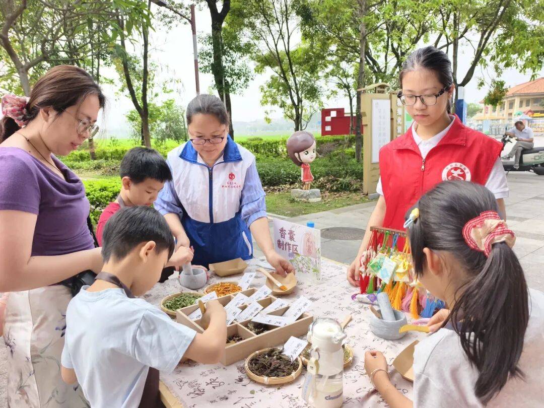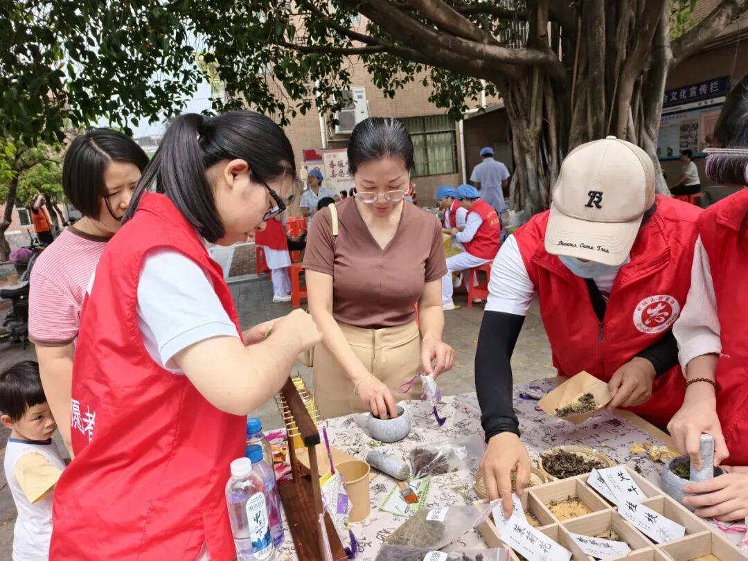 草本手作体验区吸引了大量亲子家庭积极参与。在志愿者的指导下,大家体验了手工艾条卷制、驱蚊草本香囊缝制等活动。其中,“小药童”抓药体验最受欢迎,参与者通过模拟中药抓药包、制作泡脚包等流程,认识了常见养生药材的功效,加深了对传统中医药文化的了解。