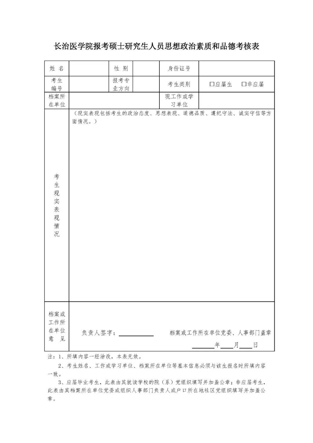 【附件2:长治医学院报考硕士研究生人员思想政治素质和品德考核表 .doc】