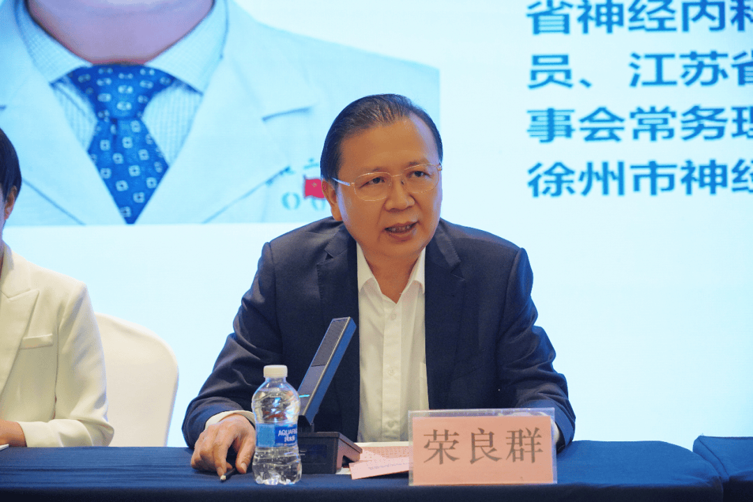 荣良群教授代表承办单位致辞,对各位专家、同仁的到来表示热烈欢迎和衷心感谢。他简要介绍了医院发展概况及神经医学学科优势,表示我院神经内科、神经外科均为省级临床重点专科,在脑卒中防治、神经介入与复杂脑血管病诊疗方面具备区域影响力,并通过柔性引进高端专家团队持续提升技术水平。