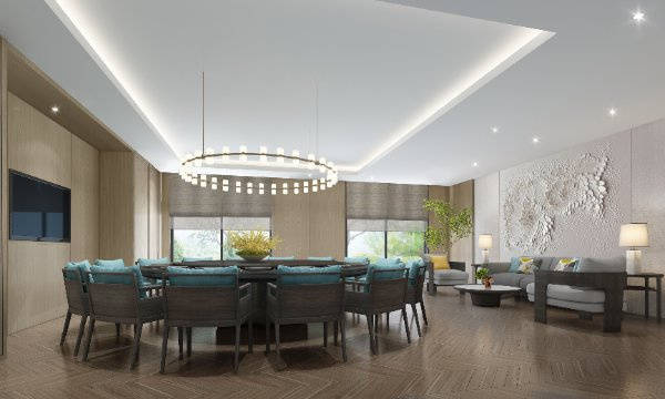 娱乐休闲:影音室、棋牌室、KTV、电竞室(适配不同年龄段长辈喜好) 美食悦饮:社区餐厅、精品餐厅、酒吧、咖啡吧、禅意茶室