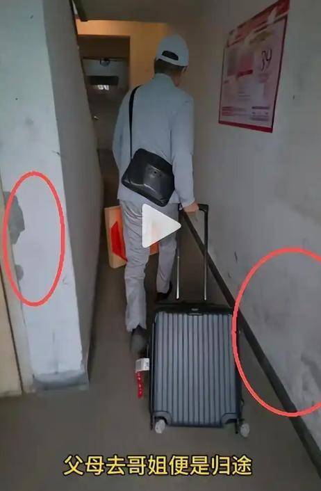 但现实给出了另一套答案,镜头推进,没有豪宅大院,只有老旧小区逼仄的过道,拉着平民的行李箱,穿梭于此。