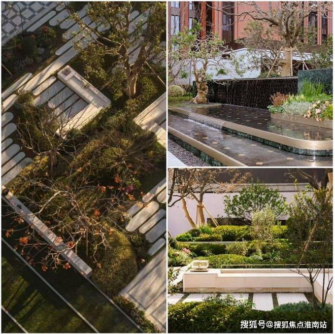 作为未来主入口的水畔之汀,则以海派弧形收边延续建筑风格,幻影蓝流水墙、普拉达绿景墙与奢金影灯形成撞色视觉焦点,中央更移植了百年桩景红果冬青与进口红枫,一步一景间皆是仪式感。