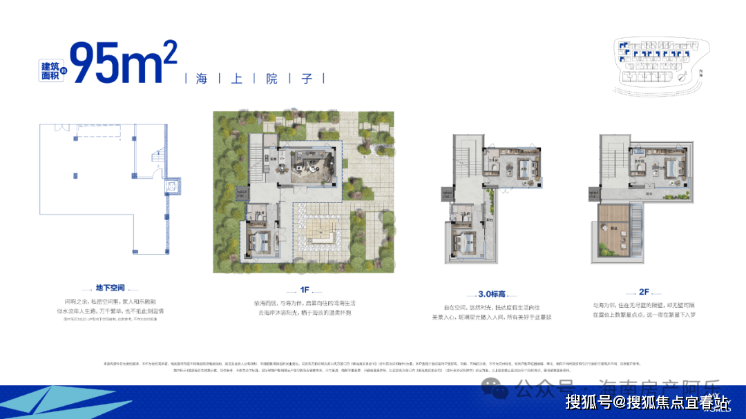 内设落日观潮台、晨曦听海廊、瑜伽草坪、乐活跑道、康养步道、景观会客厅、户外健身区等7大景观功能亮点,5重归家园林体系,筑造海湾生态公园住区。