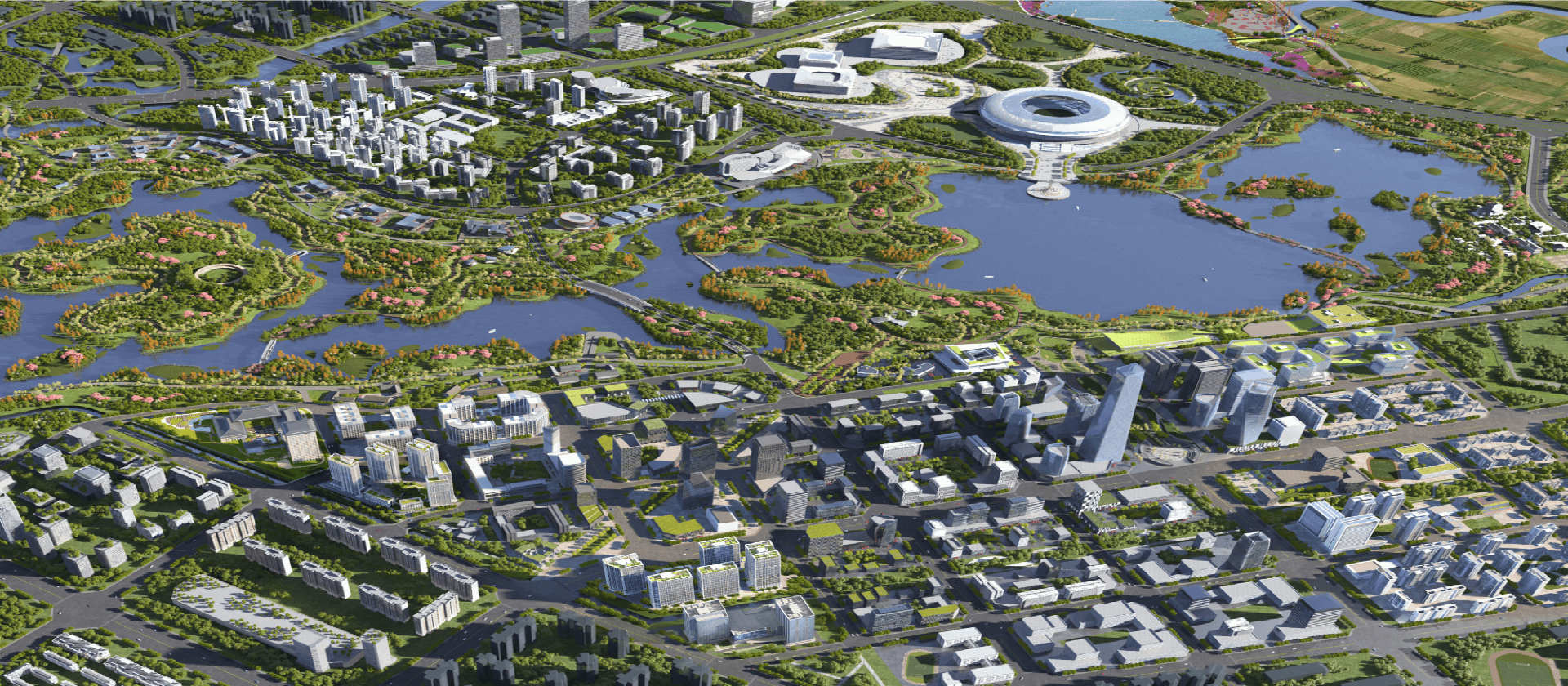 约5500亩东安湖生态公园、约1910亩驿马河公园、约32平方公里锦绣天府(龙泉欢乐田园)、龙泉山城市森林公园