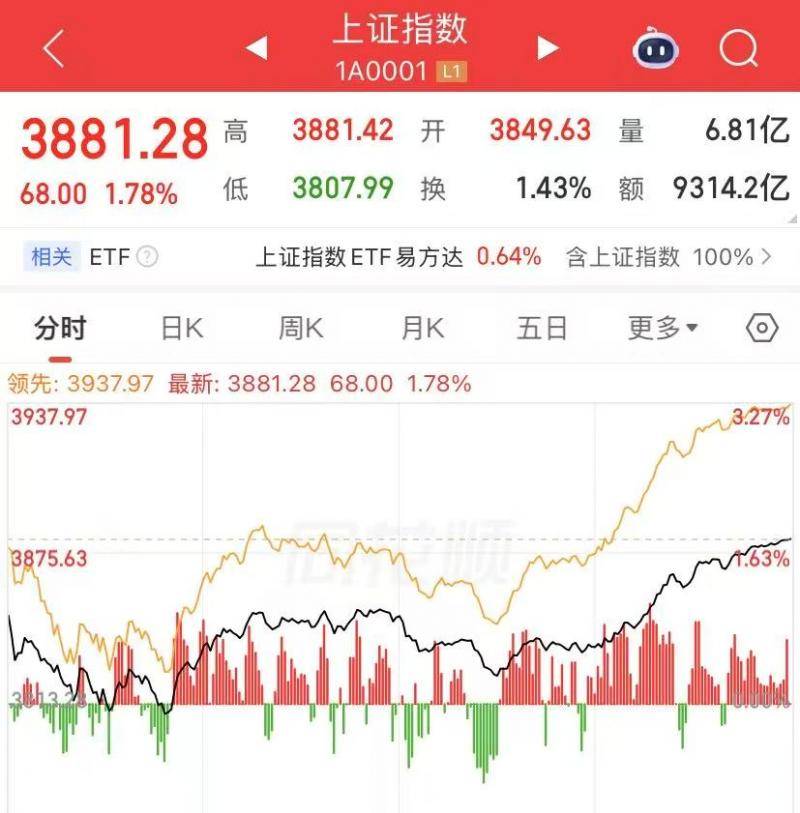 截至收盘,上证指数报3881.28点,上涨1.78%;深证成指报13536.56点,上涨1.43%;创业板指报3251.55点,上涨0.50%;北证50指数表现突出,上涨1.94%。沪深京三市合计成交额20960亿元,较上一交易日缩量3520亿元,市场情绪修复但资金仍偏谨慎。个股层面,超5100只个股实现上涨,仅328只下跌,涨跌比约15.6:1,百股涨停,恐慌盘出清后市场做多意愿显著回升。